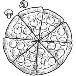 Zelfbereide tomatensaus, kaas, hesp, champignons, salami, paprika
