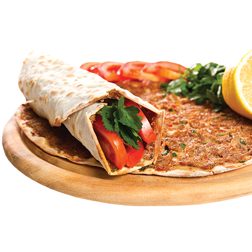 Zelfbereide tomatensaus, kaas, Kebab, bief, kip, hesp, salami, pita